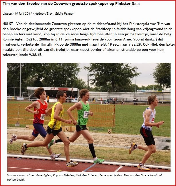 Lijkt onderstaande foto niet sterk op de foto die op AtletiekZeeland is afgebeeld? Sterker nog, het is dezelfde foto, de foto die uit mijn camera komt! Vind het jammer dat er geen naamsvermelding bij staat, een beetje reclame is nooit weg. Bij deze dus....die foto is van mij...heb ik toch iets goeds gedaan die dag.